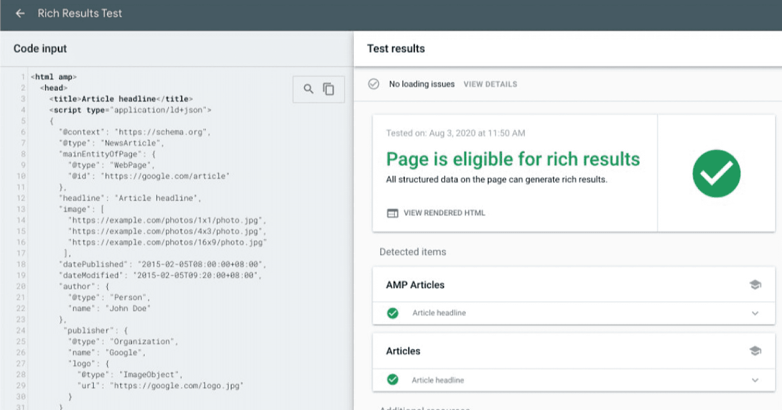 Visit Google's Rich Results Test tool